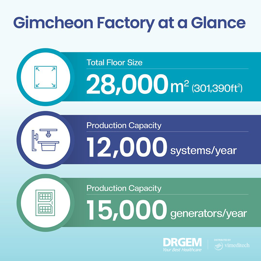 DRGEM là nhà sản xuất các hệ thống X-quang hàng đầu trên thế giới, đồng thời cũng là nhà sản xuất gốc (OEM) các hệ thống X-quang cho nhiều hãng thiết bị y tế, với quy mô sản xuất lên tới hơn 36.000 đơn vị mỗi năm tại hai nhà máy với tổng diện tích sàn 35.000m2, đây được xem là nhà máy X-quang có quy mô và năng lực sản xuất hàng đầu tại Hàn Quốc cũng như trong khu vực.